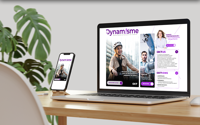 Depuis avril 2022, le magazine d'AKT est entré dans une nouvelle ère en passant au format 100% NUMÉRIQUE ! Véritable E-MAGAZINE, le «Dynam!sme 2.0» est multisupport (écran, tablette, smartphone) et enrichi de contenus multimédia inspirants : vidéos, podcasts, galeries photos, graphiques interactifs…